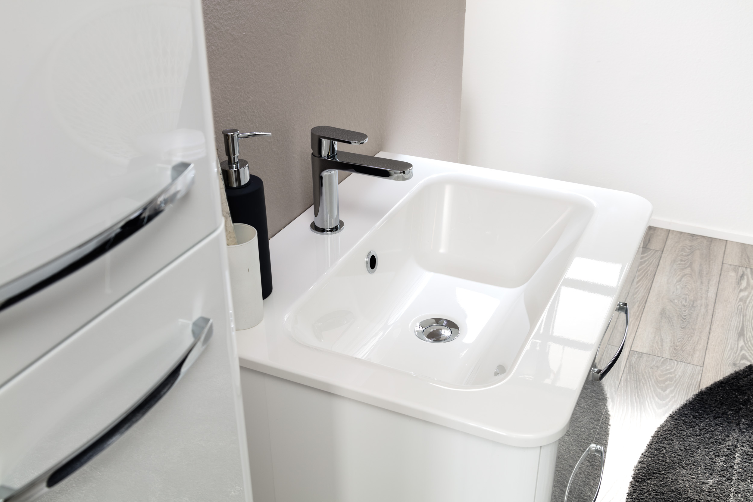 حوض بورسلان فاخر مقاوم للخدوش وسهل التنظيف.