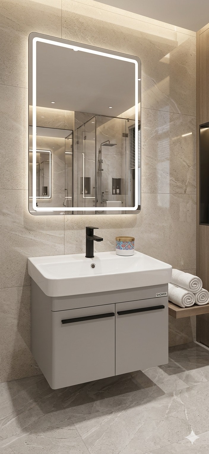 مرآة مدمجة مع إضاءة LED عالية الجودة